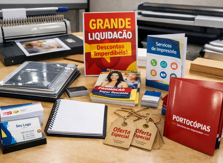 Possuimos uma variedade de impressos que ajudam seu negocio a evoluir no mercado. Como cartões de visitas, panfletos, folders, cartazes, tags, pastas e impressos em geral. Alguns acabamentos como plastificações , encadernação e corte também fazem parte dos serviços prestados pela portocópias.